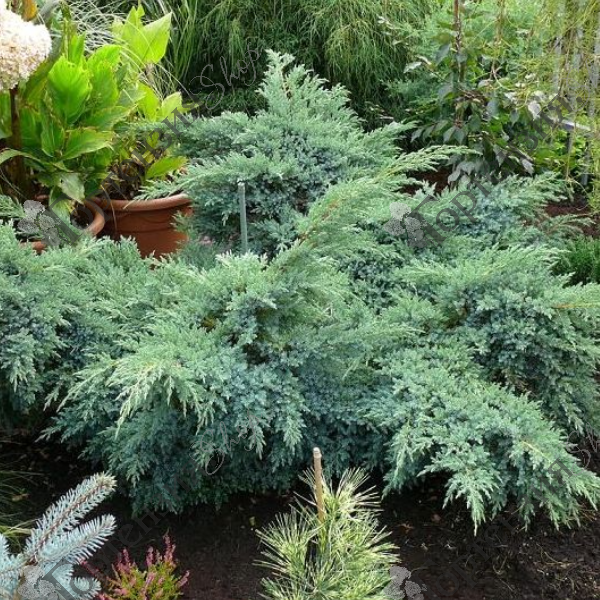 Можжевельник чешуйчатый Блю Шведе (Juniperus squamata Blue Swede) - вечнозеленый, хвойный голубой кустарник. Форма кроны — пушистая компактная. В 10-летнем возрасте достигает высоты 0,5 м, и диаметром 1 м; максимальный размер – 1,5 м в высоту и 2,5 м в диаметре. Годовой прирост 10 см. Хвоя заострённая, колючая, сизо-голубого цвета, к зиме меняет окраску на серый с металлическим оттенком. Шишко-ягоды темно-синие с сизоватым налетом, круглые. Специальной обрезки не требуется. Полив умеренный, регулярный. Светолюбив, но выносит небольшое затенение.