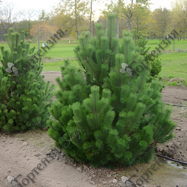 Сосна горная (Pinus mugo) – хвойное вечнозелёное растение с различными вариантами форм: от низких почвопокровных кустарников и стлаников до деревьев высотой 10-15 метров. В среднем высотой 4 метра и шириной 5 метров. Цветёт весной. Окрас мужских цветов желтоватый, женских – розовый. Шишки серо-коричневые. В ландшафте сосна горная используется для создания красивых композиций в сочетании с камнями и другими растениями.