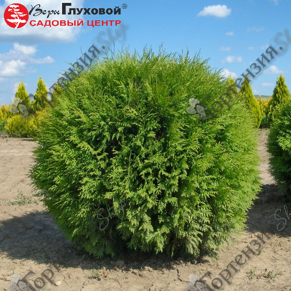 Туя западная Глобоза— медленнорастущий, карликовый сорт, высотою от 0.6 до 1.2 м. Крона шаровидная  до 1.2 м в диаметре. Меняет цвет в зависимости от сезона. В весеннее время светло-зелёная к лету хвоинки темнеют, а осенью и зимой приобретают коричневатый окрас. Хвоя чешуевидная.Побеги прямые, густые, перекрёстные, растут вертикально.Теневынослива, но лучше развивается в легкой полутени. Морозостойка.