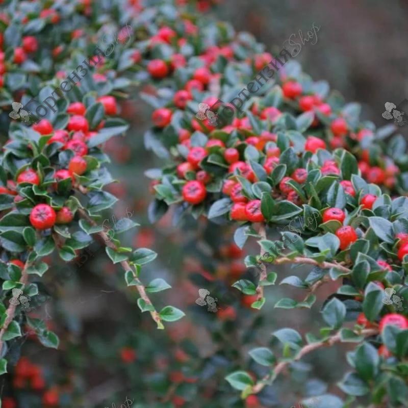 Кизильник горизонтальный (Cotoneaster horizontalis) - кустарник с горизональной кроной, высотой до 80 см, шириной до 2 м. Ветви жесткие разветвленные. Листья темно-зеленые, блестящие осенью оранжевые или ярко-красные. Цветки многочисленные, мелкие, красноватые, мёдоносные. Цветёт в июне. Плоды ярко красные шаровидные, обильно покрывающие растение. К почвам нетребователен, хорошо переносит жару и засуху, ветроустойчив. Выносит полутень. Ценный сорт, применяется в качестве покровного растения.