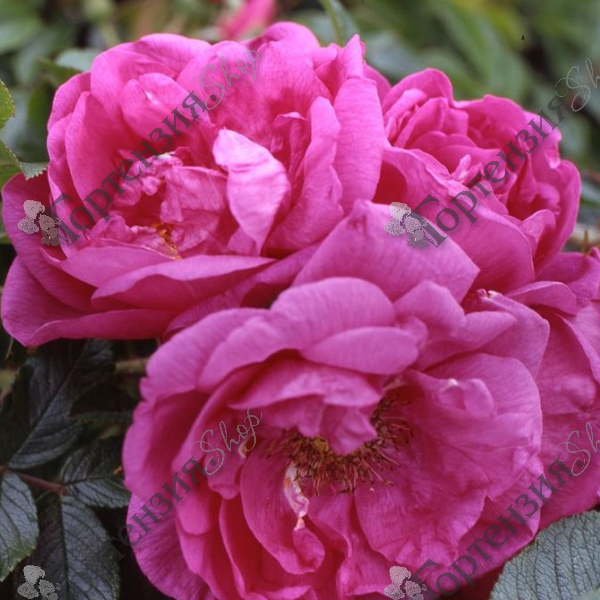 Куст невысокий, 60-80 см, шириной 70 см, хорошо разветвленный, густой, прямостоячий, с изогнутыми ветвями. Лепестки темно-розовые, цветки чашевидной формы, полумахровые или махровые, диаметром 5 см, с характерными желтыми тычинками в центре. Цветки собраны в большие соцветия, очень ароматные. Цветение волнами в течение всего сезона. Листва темно-зеленая, полуматовая, очень устойчивая к болезням , высокоустойчива к черной пятнистости и мучнистой росе. Рекомендуется использование для массовых посадок на больших территориях, посадки в клумбы, создании бордюров, выращивании в контейнерах